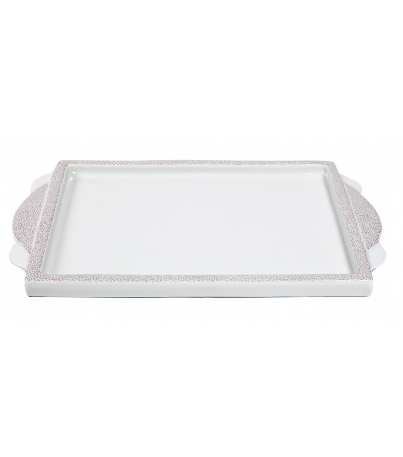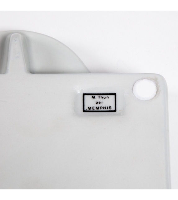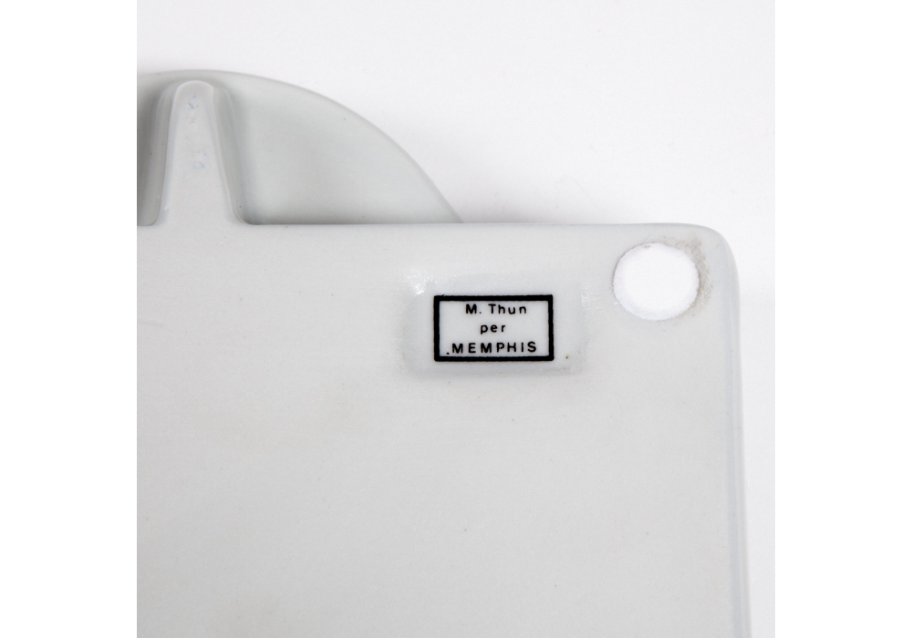 Manitoba conçu par Matteo Thun pour Memphis Milano est un plateau en porcelaine blanche avec des décorations.