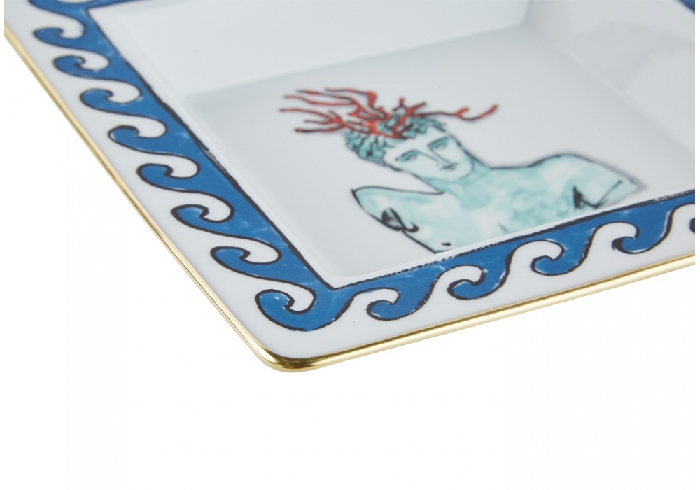 Piatto Svuotatasche Quadrato Piccolo Il Viaggio di Nettuno White conçu par Luke Edward Hall pour Ginori 1735 est un vide poche plateau décoré.