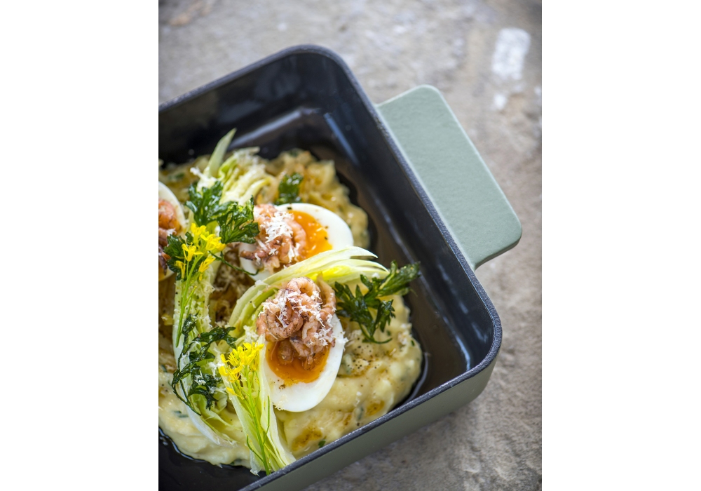 Oven Dish conçue par Sergio Herman pour Serax est une casserole avec poignées, de forme quadrangulaire entièrement réalisée en fonte, peinte en noir ou vert.