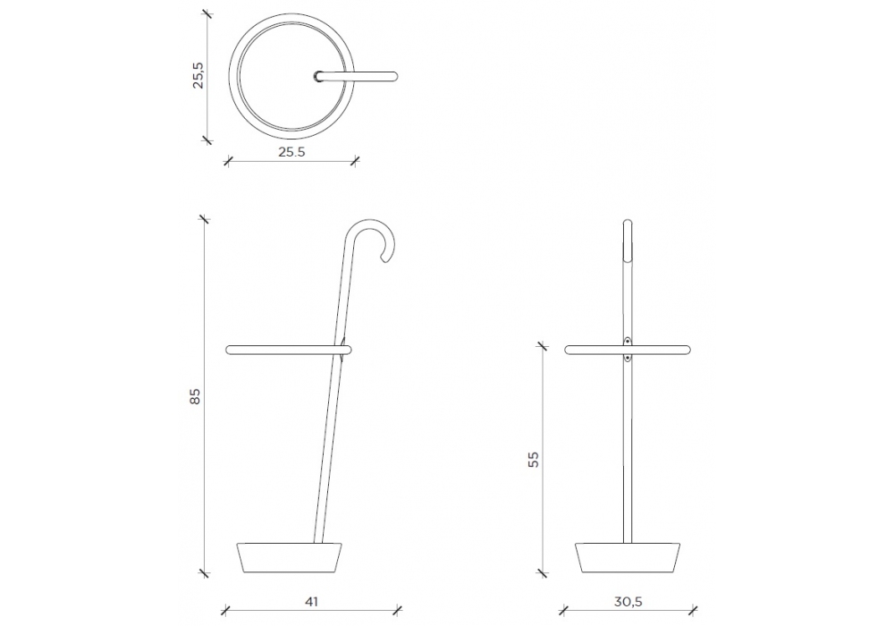 Renè conçu par Marcantonio pour Mogg est un porte-parapluie en bois de hêtre courbé, avec base en marbre noir Marquina et manche noir. L'anneau parapluie est noir.