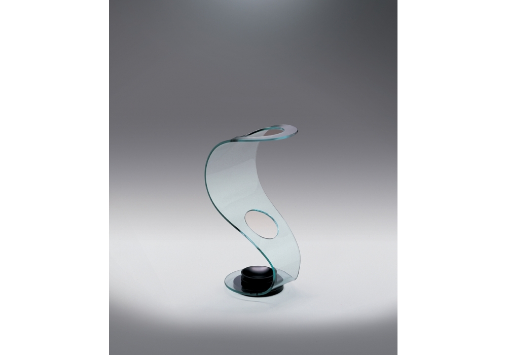Cobra conçu par Elio Vigna pour Fiam est un porte-parapluie en verre courbé et base en métal peint en noir.