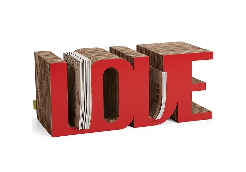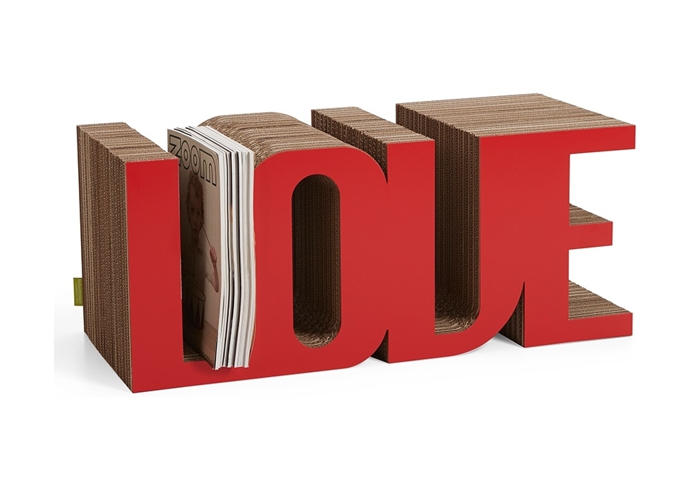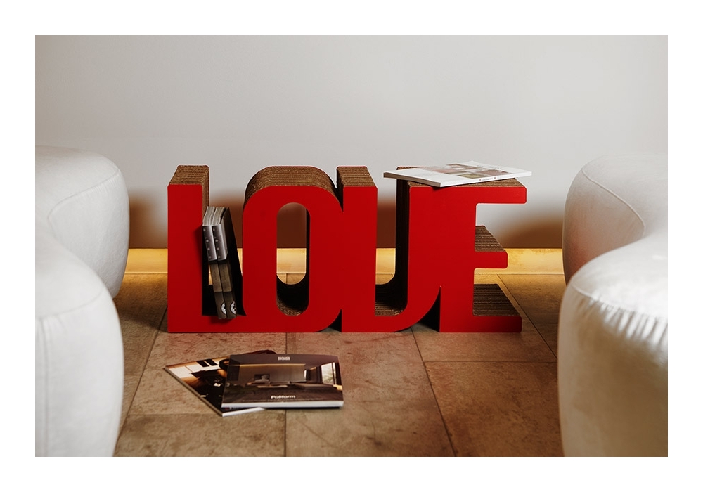 K-Love designed by Kubedesign is a small table/magazine rack with wording LOVE. Shockproof finish available in white, black or red.