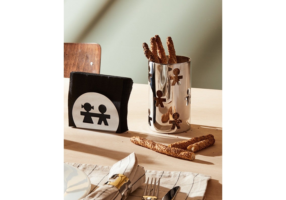 Girotondo conçu par King-Kong pour Alessi est un porte-serviette ajouré en acier inoxydable 18/10.