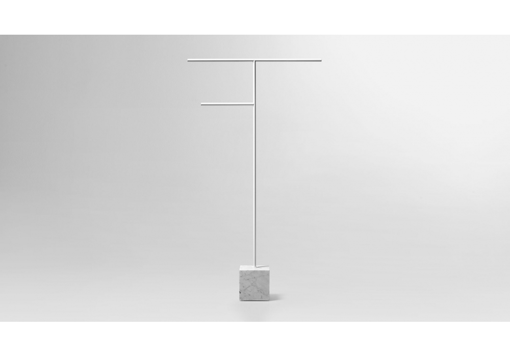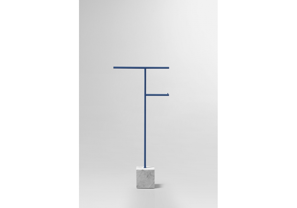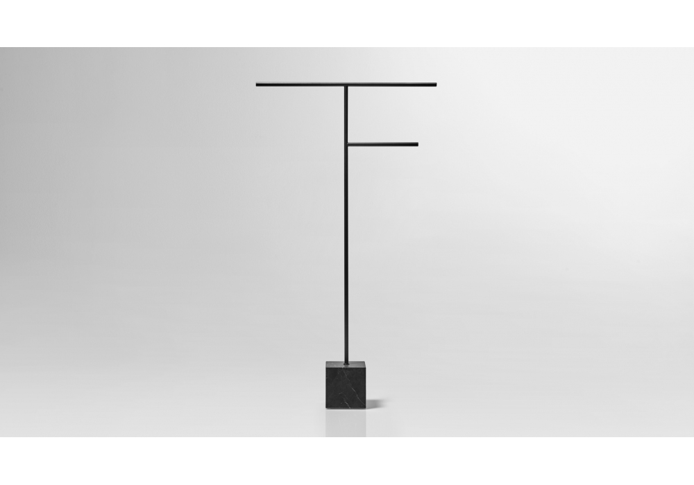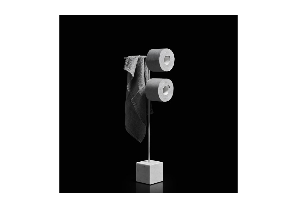 Bivio conçu par Antonio Lupi est un porte-serviettes/porte-papier réalisé avec une base en marbre satiné et une structure en laiton peint, finition en acier satiné ou chrome poli.
