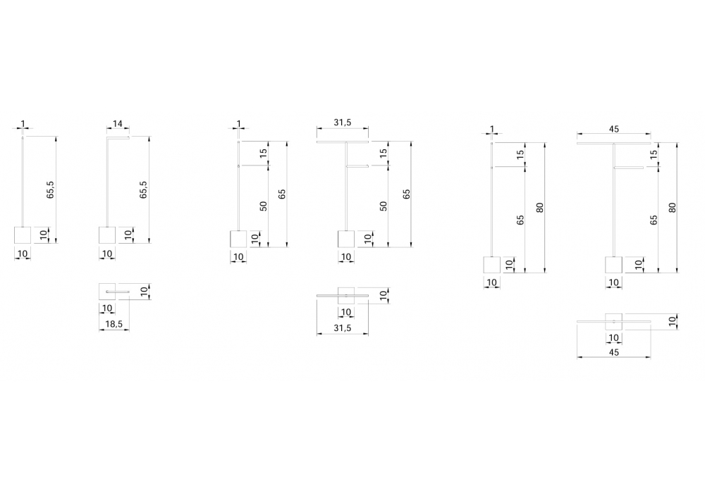| Dimensions | 18.5 x 10 x H 65.5 cm; 31.5 x 10 x H 65 cm; 45 x 10 x H 80 cm. |