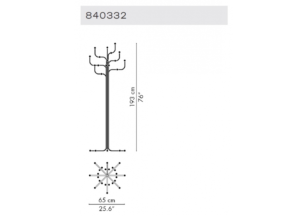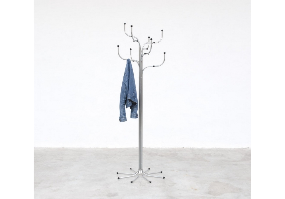 Coat Tree conçu par Sidse Werner pour Fritz Hansen est un portemanteau en acier chromé et boutons en plastique noir.