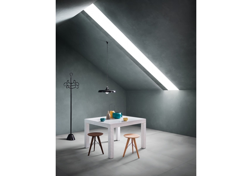 305 Servomanto conçu par Achille & Pier Giacomo Castiglioni pour Zanotta est un portemanteau avec base en polypropylène noir ou blanc. Tige de soutien et bras en acier verni noir ou blanc.