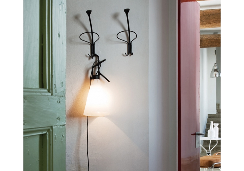 310 Museo conçu par Enzo Mari pour Zanotta est un portemanteau mural en acier peint anti-rayures noir ou blanc.