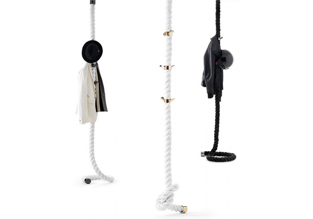 La Cima conçu par Lapo Ciatti pour Opinion Ciatti est un portemanteau à plafond composé de crochets et d'anneaux métalliques et de corde nautique tressée. Disponible en différentes finitions.