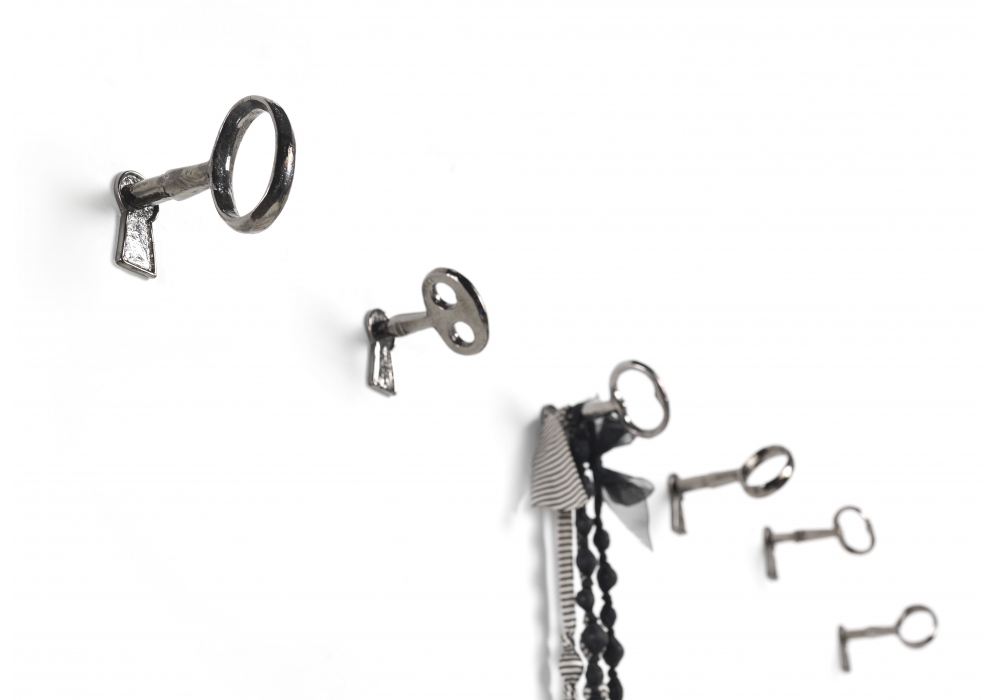 Memorie conçu par Luca Somaini pour Mogg est un kit de 4 boutons portemanteau en fusion laiton en finition nickel noir.