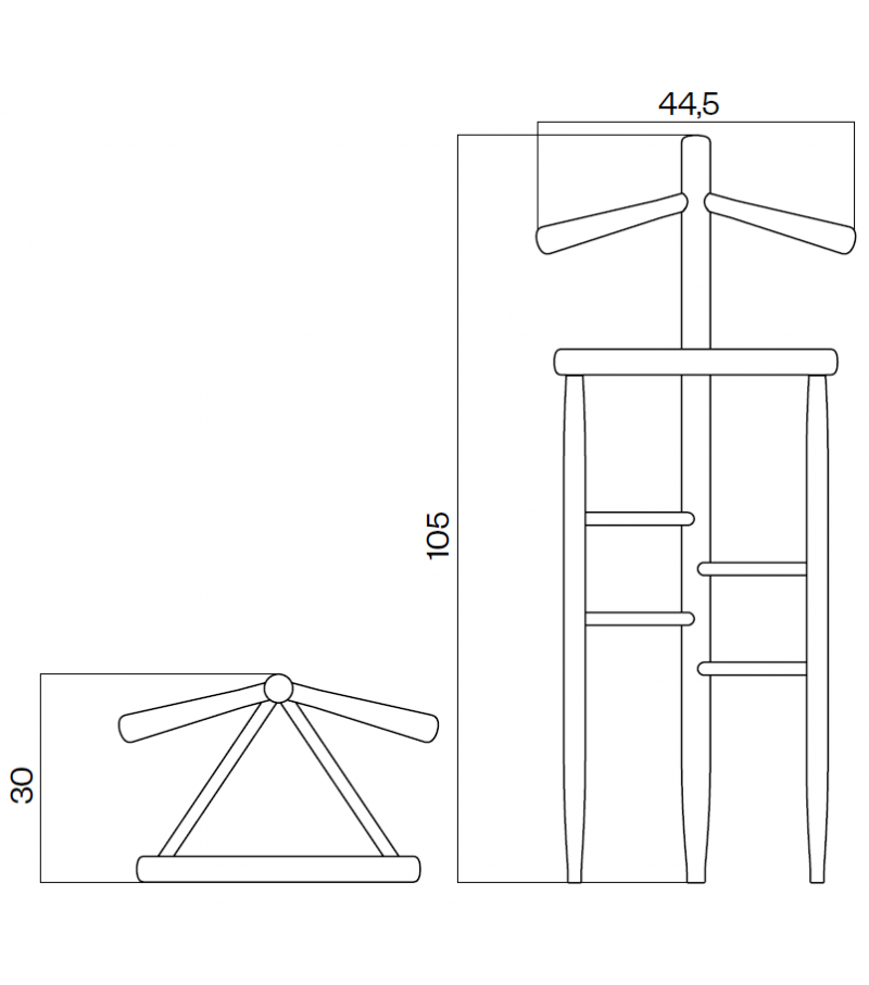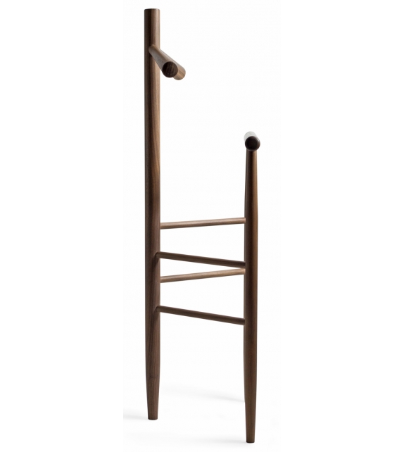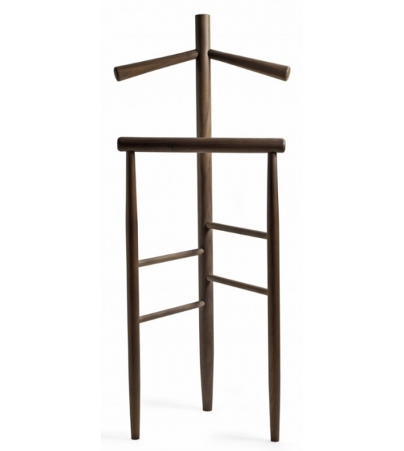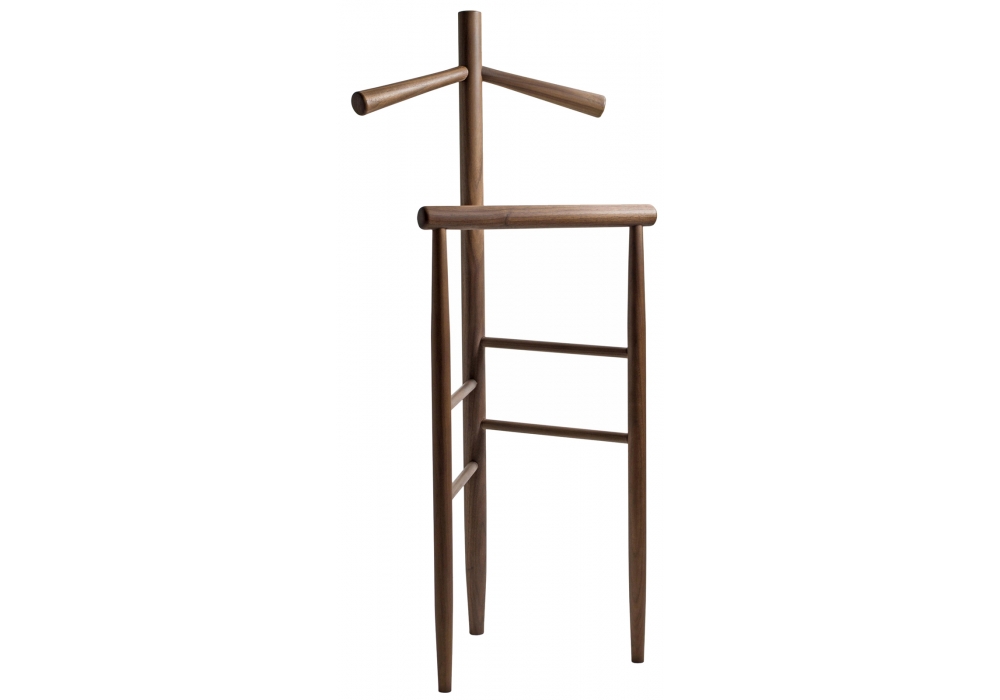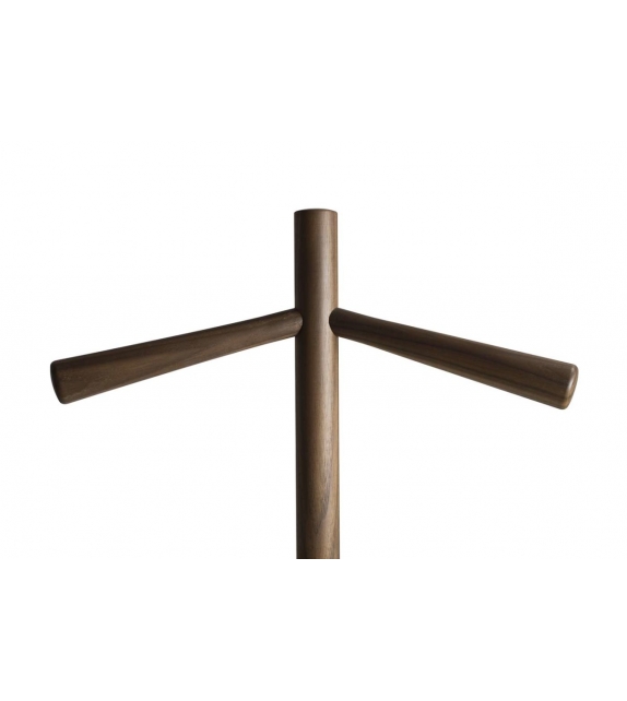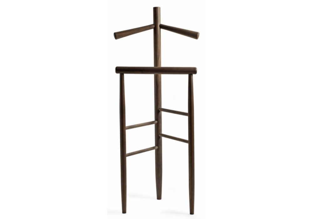 Mori conçu par Giulio Iacchetti & Alessandro Stabile pour InternoItaliano est un valet de nuit constitué par un axe central vertical agissant comme colonne de support, deux éléments obliques orienté vers le bas et éléments horizontaux greffés dans structures verticales. Mori permet de supporter tout type de vêtements et il est disponible en bois massif de noyer ou de frêne.
