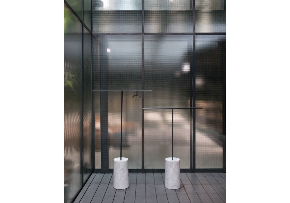 Tonbo conçu par Junpei & Iori Tamaki pour Living Divani est un portemanteau avec base disponible en différentes finitions et structure en acier, laqué gris foncé. Disponible aussi en 2 dimensions.