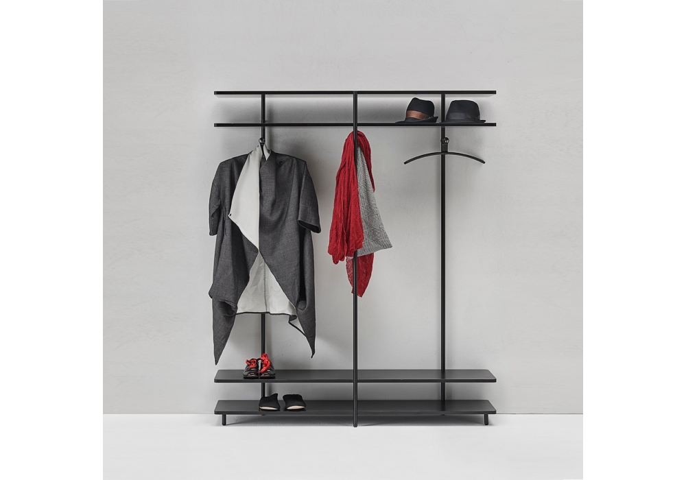 Aero V conçu par Shibuleru pour Living Divani est un portemanteau multifonctionnel avec structure et étagères disponible en différentes finitions.