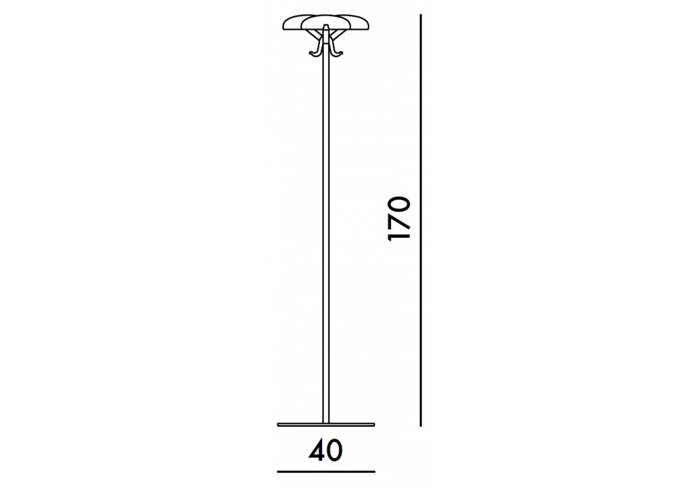 Alta Tensione conçu par Enzo Mari pour Kartell est un portemanteau composé d'une base et d'un montant en acier, de supports et de crochets en aluminium et de capuchons en PMMA teinté dans la masse et peint anti-rayures.