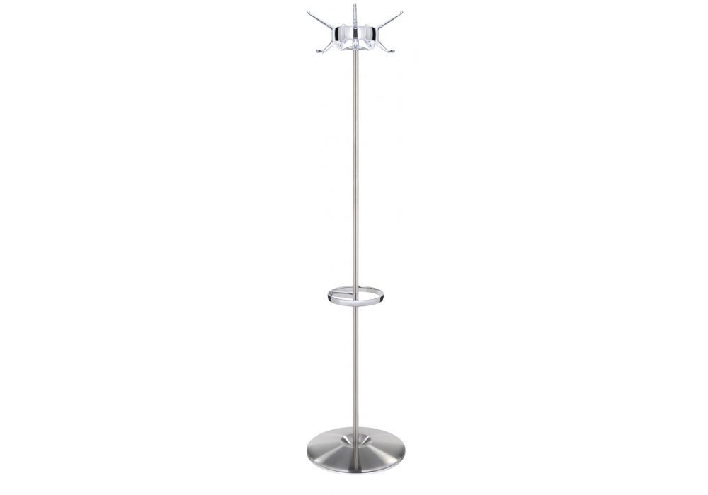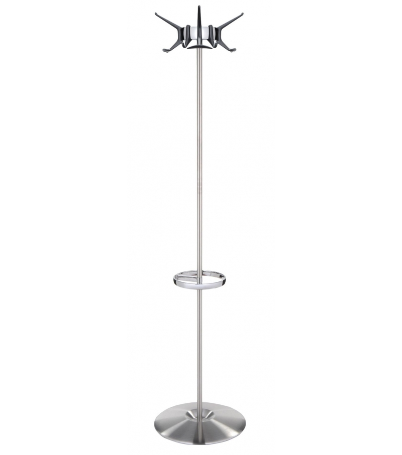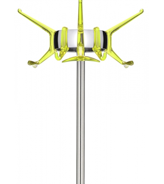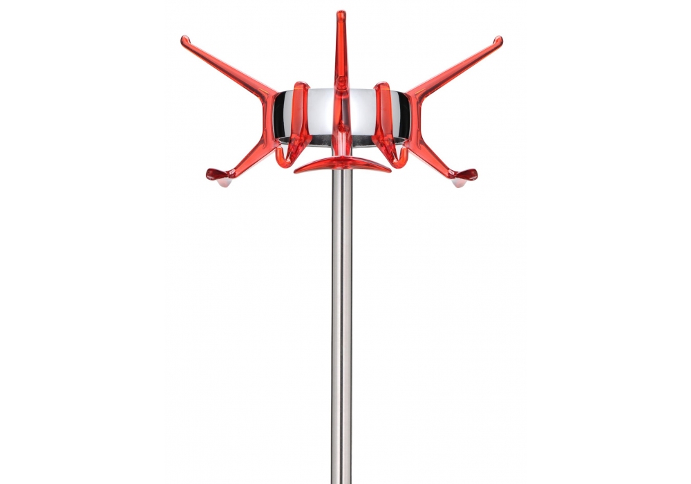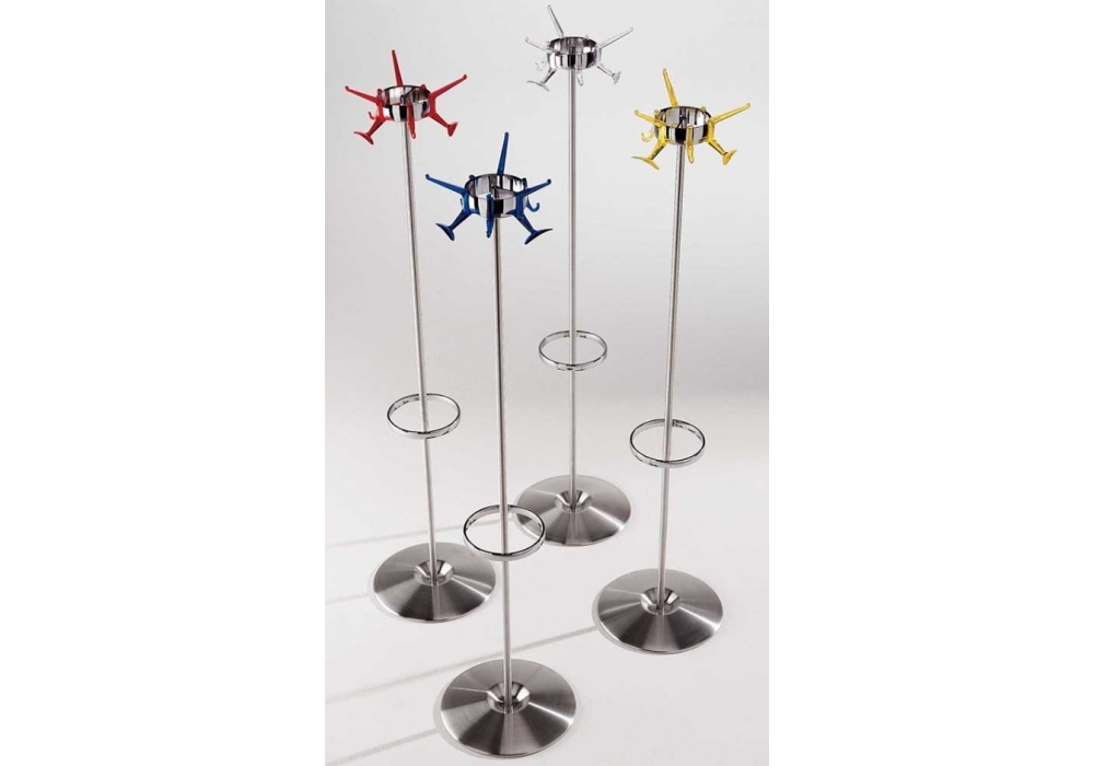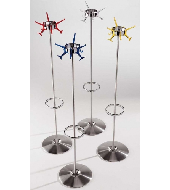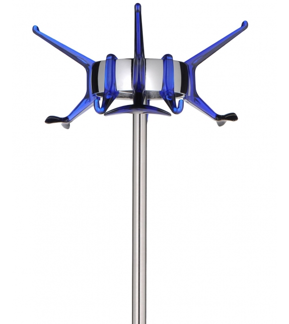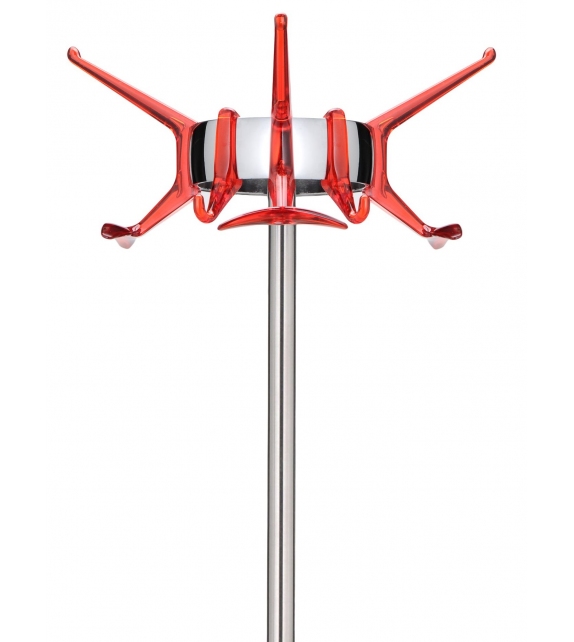 Hanger conçu par Alberto Meda pour Kartell est un portemanteau composé d'une base et d'un montant en acier brossé, d'anneaux en aluminium moulé sous pression poli et de crochets en polycarbonate transparent.