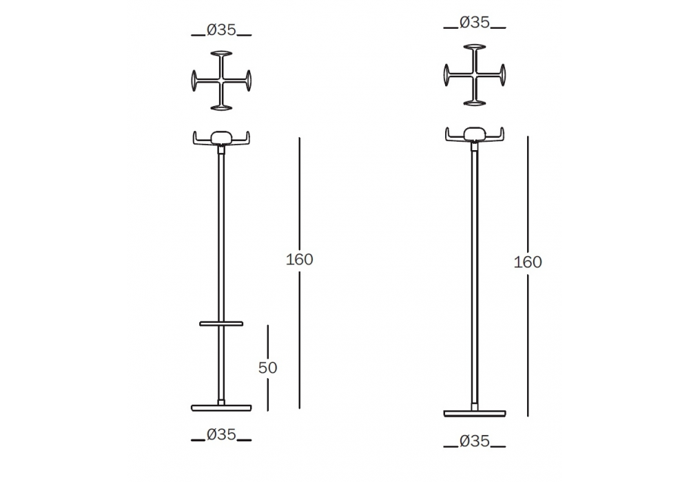 Four Leaves conçu par Edward Barber & Jay Osgerby pour Magis est un cintre réalisé en aluminium poli ou peint. Disponible avec ou sans porte-parapluie.
