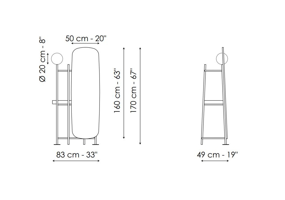 Salomé conçu par Mauro Lipparini pour Bonaldo est un valet de nuit avec structure en métal, en différentes finitions. Le plateau peut être dans la même finition que la structure ou dans une couleur de votre choix entre laiton et cuivre. Il est équipé d'un abat-jour en verre, en 3 couleurs.