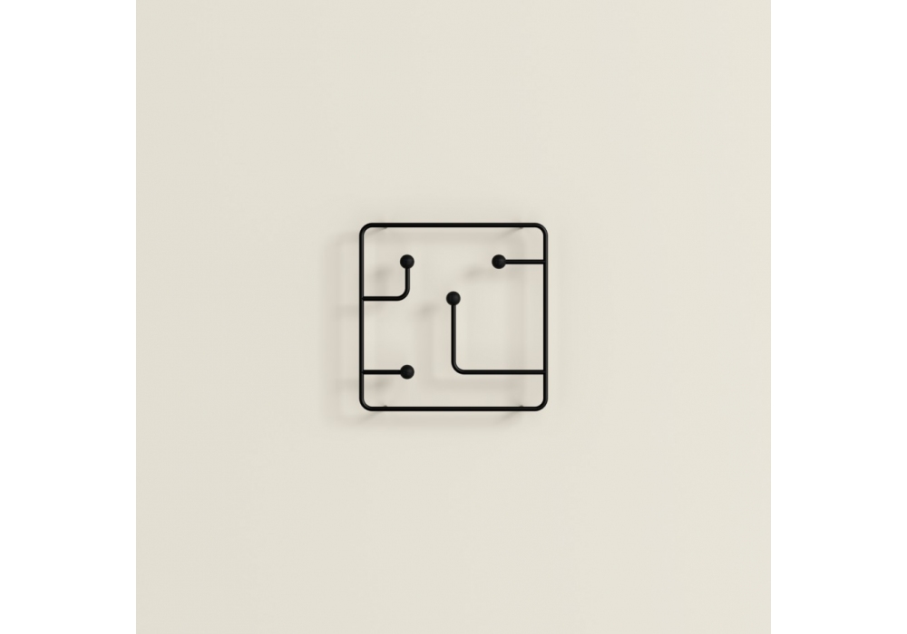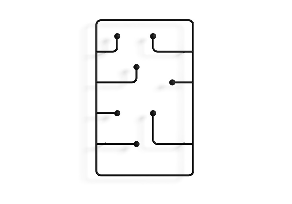 Hang Around conçu par Derek McLeod pour Karakter est un portemanteau réalisé avec une structure en acier enduit de poudre et des chevilles. Disponible en 2 dimensions.