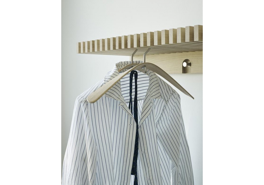 Cutter conçu par Niels Hvass pour Skagerak est un portemanteau réalisé en chêne et acier inoxydable, disponible en différentes finitions.