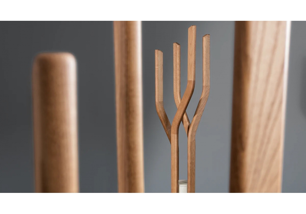 Alma conçu par Spazioameno pour Bonaldo est un porte-manteau composé de branches en bois massif finition noyer américain, base et colonne centrale en béton, en différentes finitions.