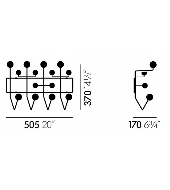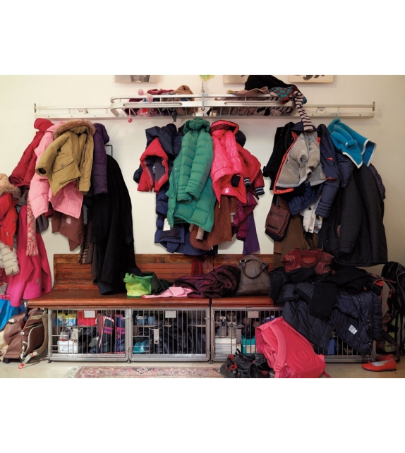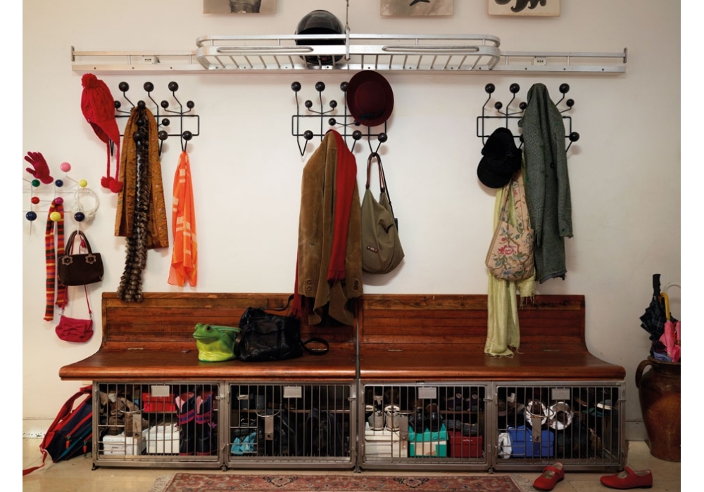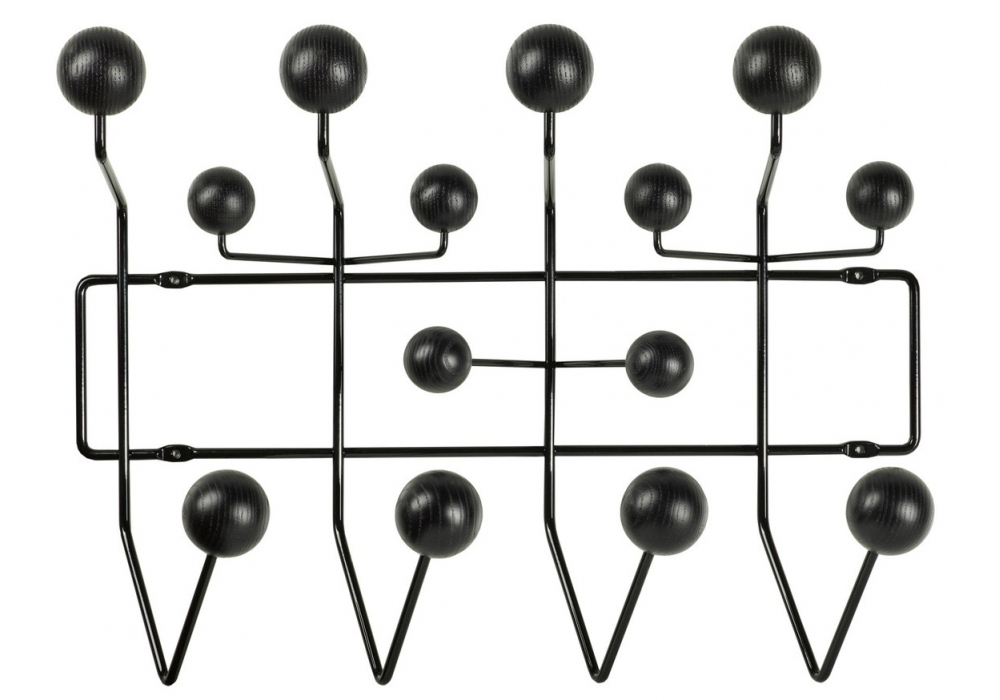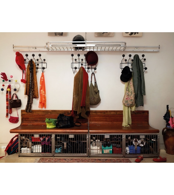 Vitra Hang il all: Des boules de bois aux couleurs vives qui remplacent les simples patères doivent inciter les enfants à y suspendre « toutes leurs affaires », comme l'indique le nom de l'objet. Grâce à l'espace régulier qui sépare les boules, le Hang It All peut être étendu à l'infini.