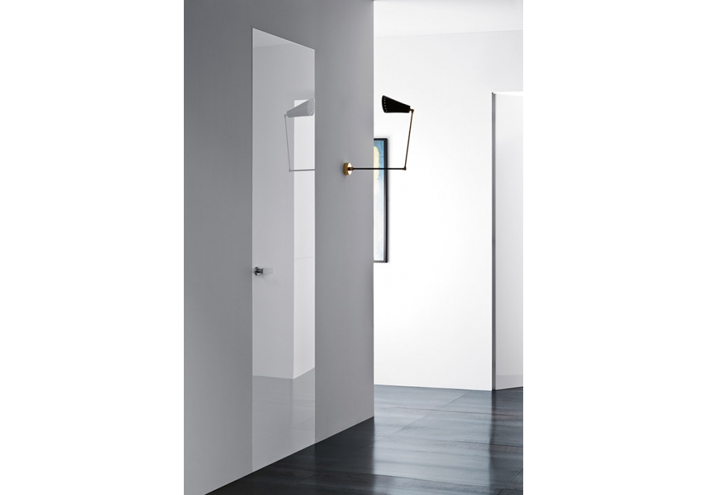 Rasomuro 55 conçue et produite par Lualdi est une porte battante au ras du mur en bois et aluminium, avec un cadre en aluminium, c'est une porte design capable de s'intégrer dans le mur avec un camouflage parfait. Disponible en différentes finitions.