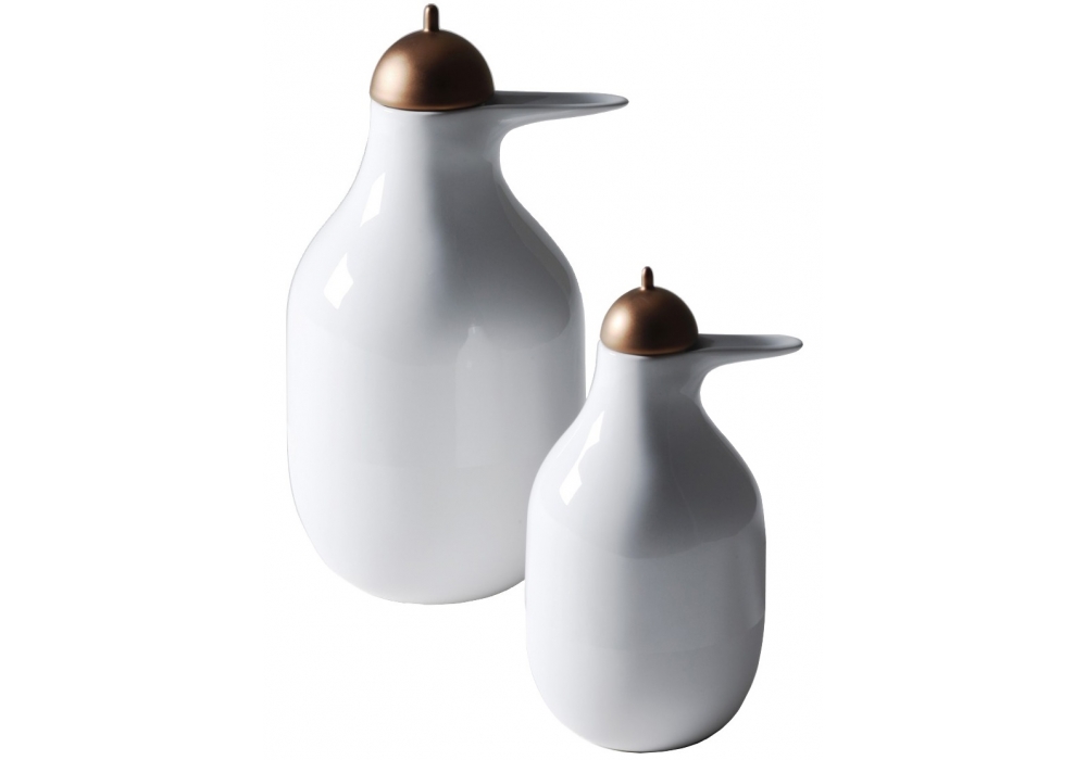Pellicano conçue par Jaime Hayon pour Bosa est une carafe en céramique avec bouchon en cuivre mat, avec de douces formes féminines inspirées par l'élégance du pélican. Facile à saisir, Pellicano peut être utilisé pour servir eau, jus, café et lait et est disponible en 2 différentes dimensions.
