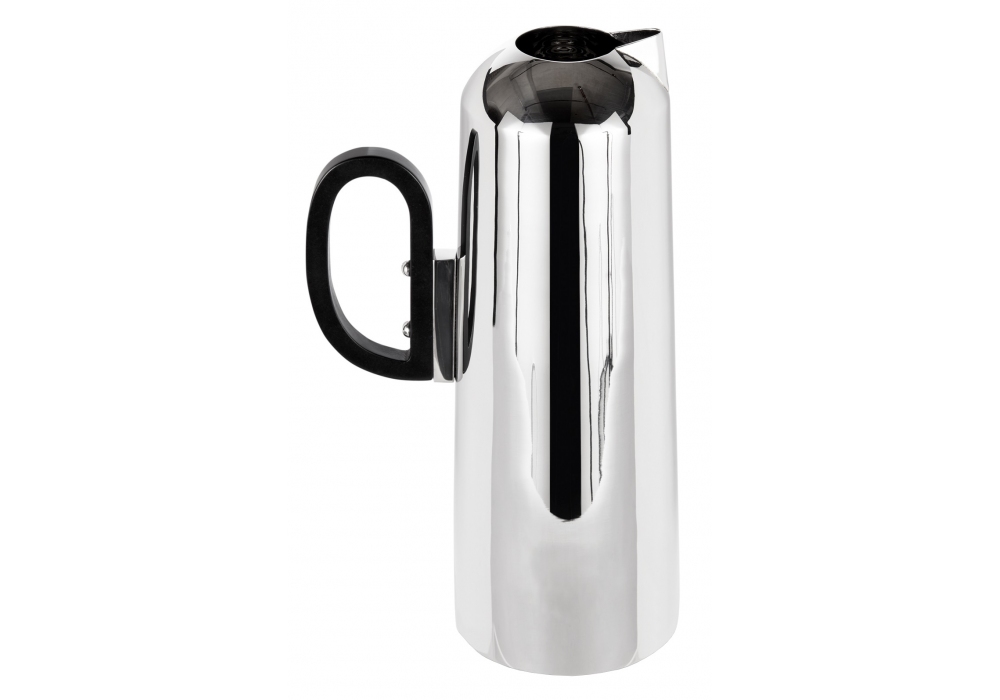 Form conçue par Tom Dixon est une cruche en acier inoxydable avec une finition argentée brillante.