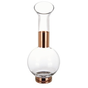 Tank conçue par Tom Dixon est une carafe en verre soufflé transparent, décorée de détails disponibles en finitions cuivre ou noir.