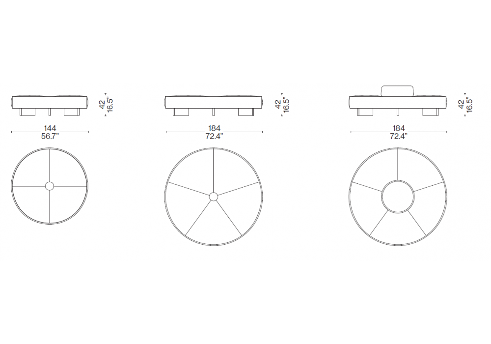 | Diamètre | Ø 144 cm; Ø 184 cm. |