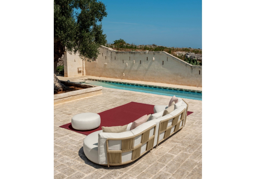Scacco conçu par Ludovica et Roberto Palomba pour Talenti est un pouf d'extérieur, en aluminium et en tissu disponible en différentes finitions et en version ronde et carrée.