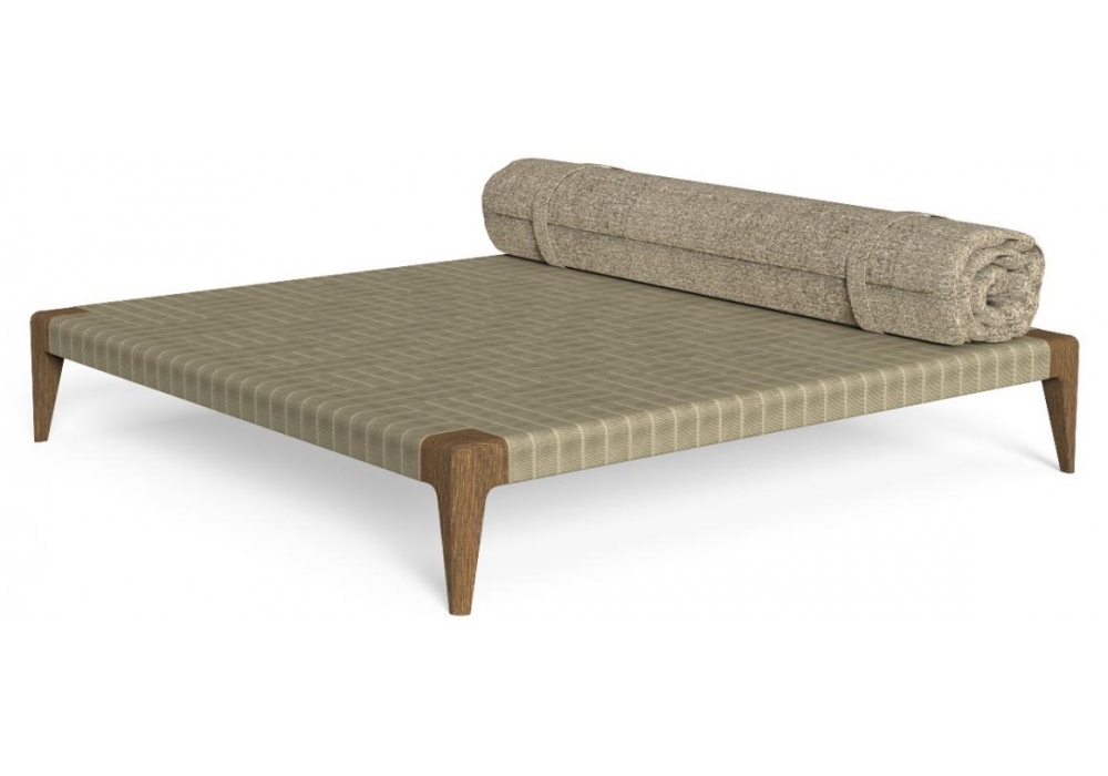 Cruise Teak conçu par Ludovica et Roberto Palomba pour Talenti est un pouf de forme carrée. Structure en bois, sangles élastiques synthétiques et coussin en tissu imperméable.