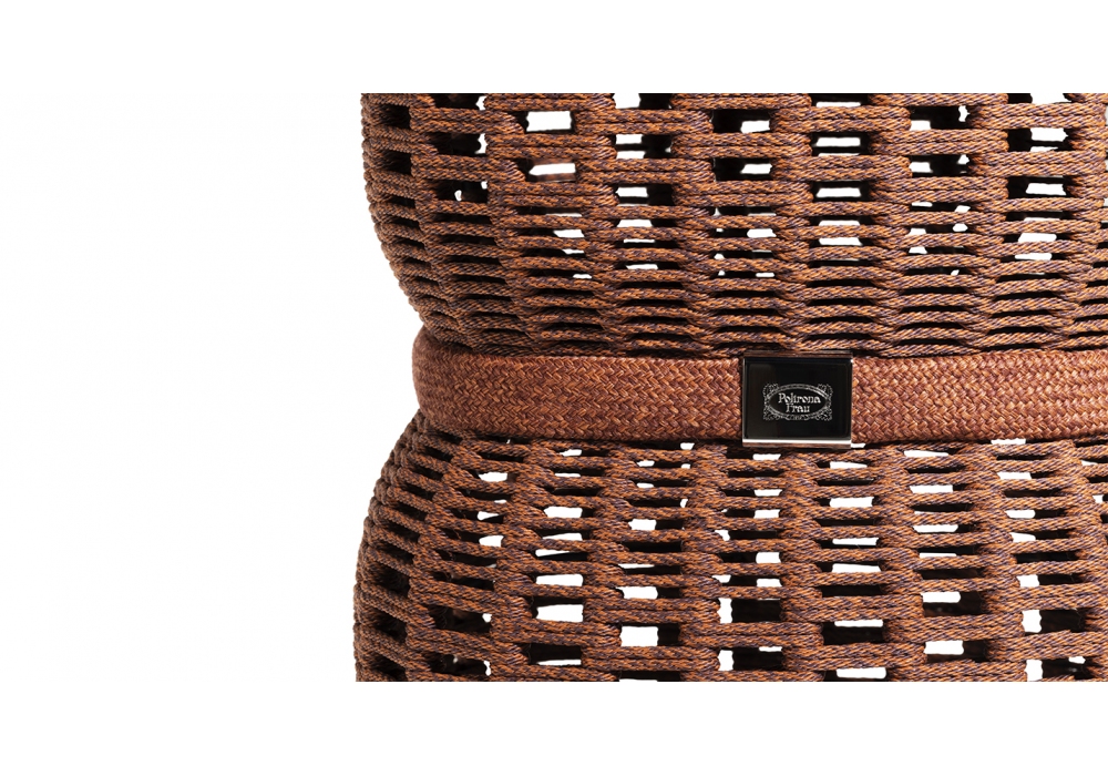 Leplì conçu par Kensaku Oshiro pour Poltrona Frau est un pouf composé d'une corde en polypropylène tissée autour d'une structure en aluminium.