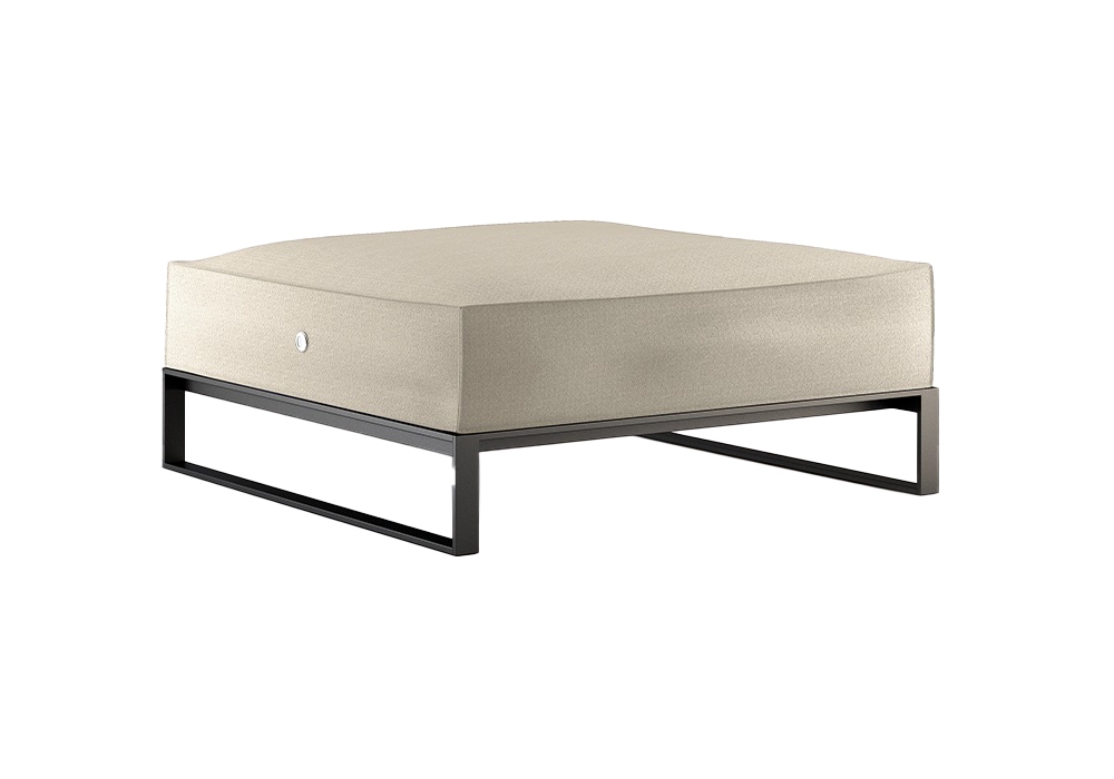 Garden Moore Ottoman conçu par Broberg & Ridderstråle pour Röshults est un ottoman avec structure en acier inoxydable anthracite et revêtement en tissu Sunbrella® résistant aux intempéries disponible en différentes variantes.