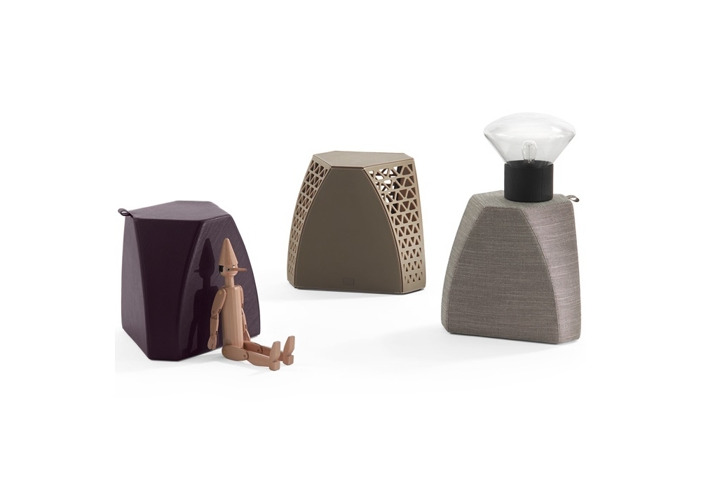 Hudson est une pouf/table basse conçue par Virginia Harper pour Poltrona Frau. Une table en contient une autre, dans un jeu élégant de boîtes chinoises, de vides et de pleins, de matière et de légèreté. La première est une mini-architecture qui s’inspire de la Tour de la Liberté de New York. La structure creuse en métal, finition canon de fusil, reproduit un polyèdre hexagonal élancé vers le haut.