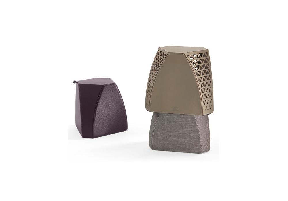 Hudson est une pouf / table basse conçue par Virginia Harper pour Poltrona Frau. Une table en contient une autre, dans un jeu élégant de boîtes chinoises, de vides et de pleins, de matière et de légèreté. La première est une mini-architecture qui s’inspire de la Tour de la Liberté de New York. La structure creuse en métal, finition canon de fusil, reproduit un polyèdre hexagonal élancé vers le haut. Tout autour, six panneaux de Cuir Cuoio Saddle® Extra savamment cousus entre eux par un fil en contraste. Le dessus est en tôle et bouleau multiplis peint en noir, et revêtu de cuir. Le revêtement alterne trois panneaux en cuir plein et trois panneaux en cuir perforé. La deuxième table-pouf, qui s’insère parfaitement dans la cavité de la première, est composée d’une structure en hêtre multiplis revêtue d’un fin rembourrage en mousse de polyuréthane et complètement enveloppée de tissu ou de cuir Pelle Frau®. Une petite poignée permet d’enlever et de déplacer le pouf facilement, et de l’utiliser près de l’autre petite table ou même séparément.