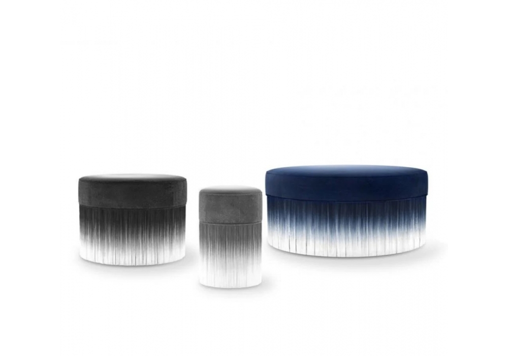 Amami conçue par Lorenza Bozzoli pour Moooi est une collection de poufs revêtus de velours. Disponible en trois dimensions.
