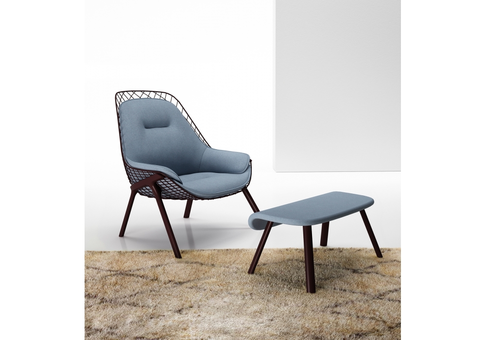 037 Gran Kobi conçu par Patrick Norguet pour Alias est un pouf avec structure peinte et assise en contreplaqué courbé recouvert de tissu Kvadrat® ou de cuir Pelle Frau®.