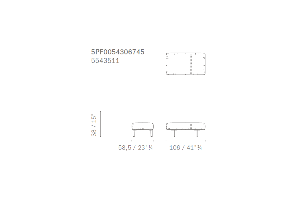 John-John, conçu par Jean-Marie Massaud pour Poltrona Frau, est un repose-pieds dont la structure est en contreplaqué de bouleau et le rembourrage en mousse de polyuréthane et en ouate de polyester. Les pieds sont en aluminium finition ruthénium avec des capuchons en plastique transparent. Support en cuir pelle Frau®, non amovible.