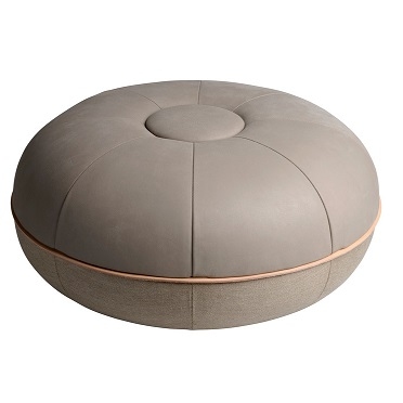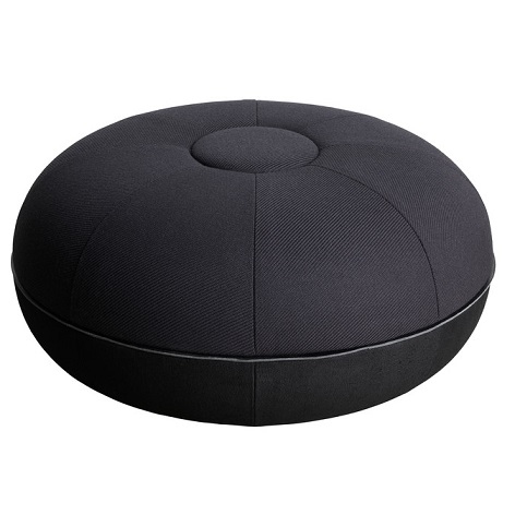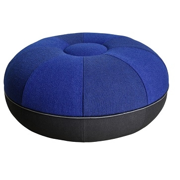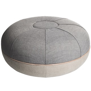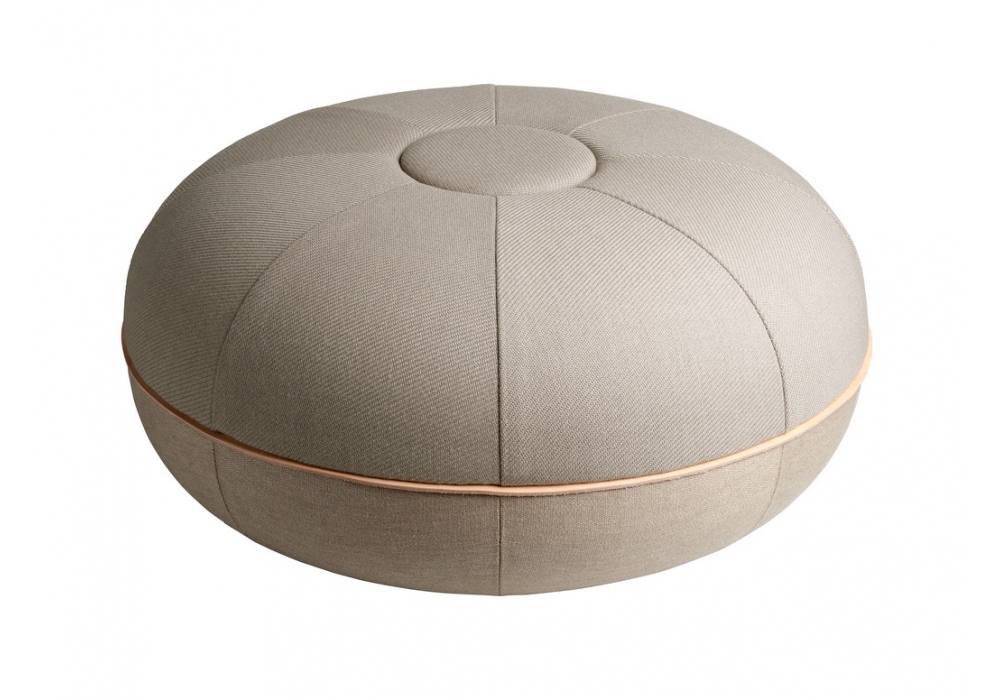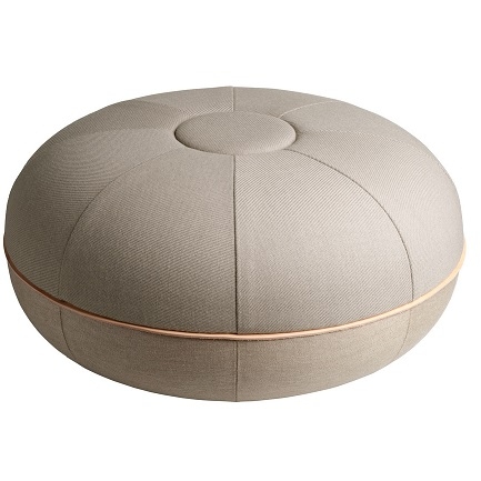 Le pouf conçu par Cecilie Manz pour Fritz Hansen est proposé dans différentes combinaisons de couleurs, avec un passepoil en cuir. Disponible en deux dimensions.