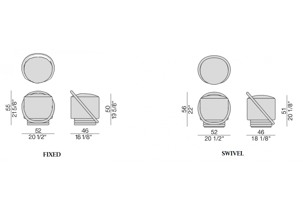 | Dimensions | • Ø 52 x H 55 cm; • Ø 52 x H 56 cm |