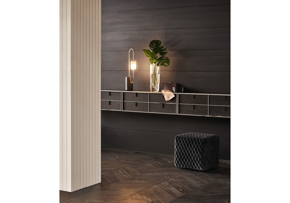 Play conçu par Poliform est un pouf rembourré avec revêtement disponible en cuir ou en tissu.