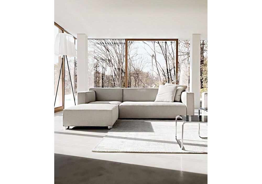Berber & Osgerby conçu par Edward Barber & Jay Osgerby pour Knoll est un pouf avec pieds réglables en aluminium chromé ou peint en rouge ou noir. Revêtement en différents tissus ou cuirs.