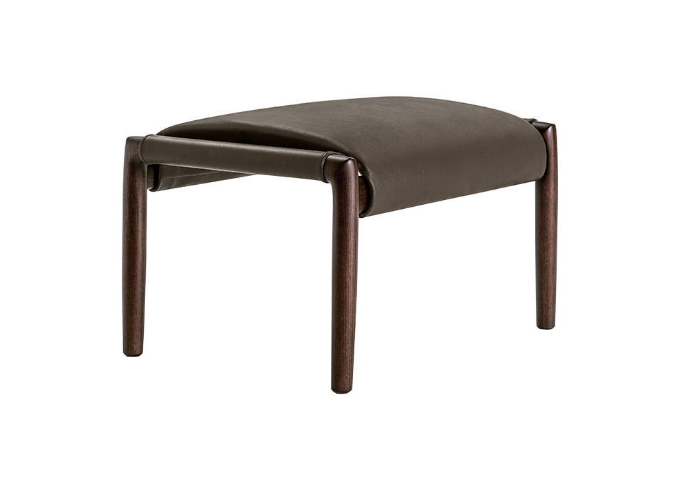 Times Lounge conçu par Spalvieri & Del Ciotto pour Poltrona Frau est un pouf avec structure en bois de frêne massif teinté wengé ou moka. Le coussin est soutenu par une surface en cuir Pelle Frau attachée à la structure en bois. Le coussin est rembourré de mousse de polyuréthane et d'ouate de polyester et est recouvert de cuir ou de tissu.