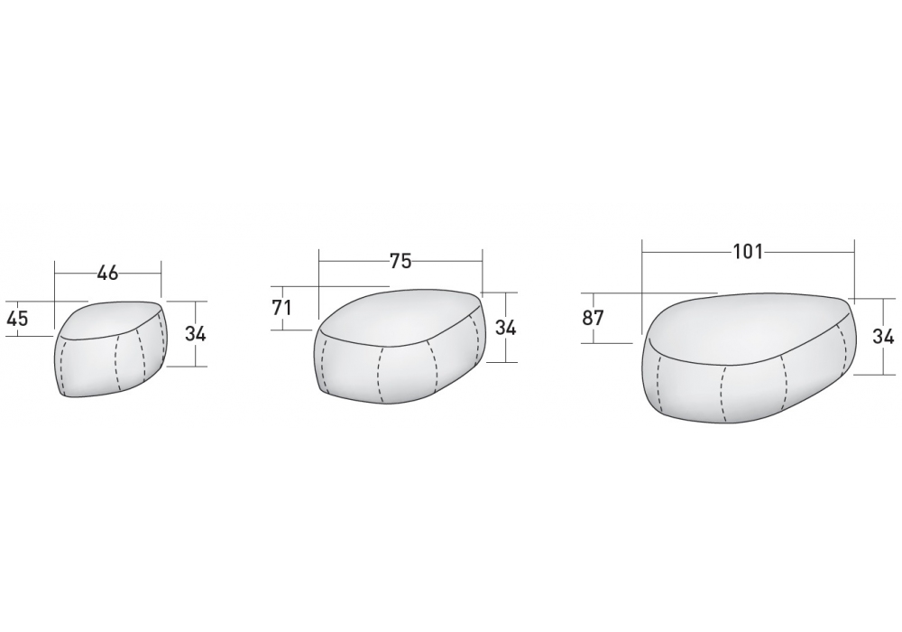 | Dimensions | 45 x 45 x H 34 cm; 75 x 71 x H 34 cm; 101 x 87 x H 34 cm |
