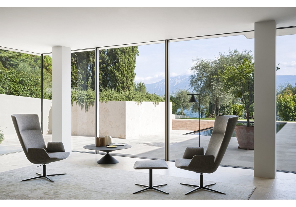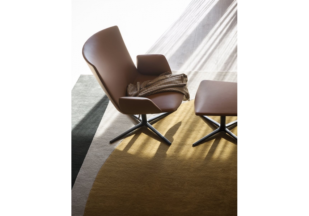 Calum Lounge Pouf conçu par Simon Pengelly pour Desalto est un tabouret avec assise moulée en polyuréthane rigide et rembourrage en mousse. Base pivotante à 4 étoiles en aluminium.