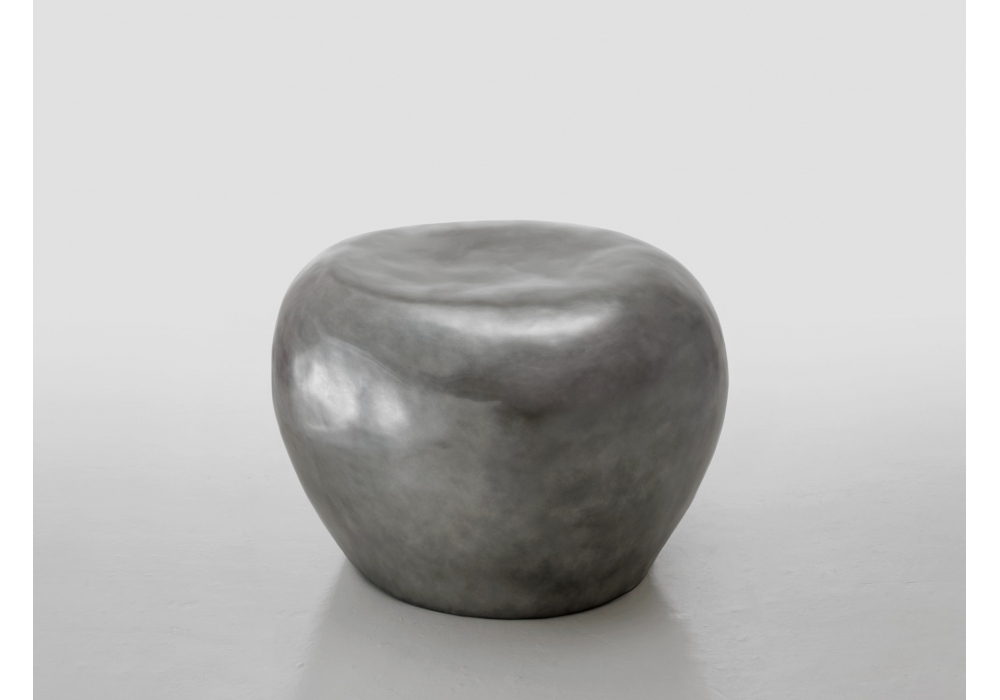 Mercurio conçu par ImperfettoLab est un pouf en fibre de verre, dans une finition chromée. Disponible en différentes tailles.