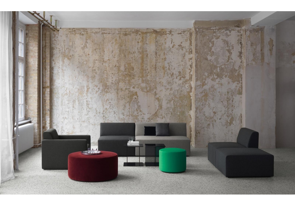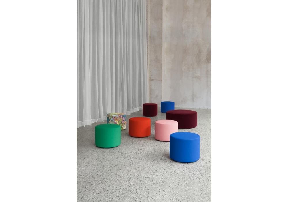 Kerman conçu par Philipp Mainzer et Farah Ebrahimi pour E15 est un pouf rond ou rectangulaire disponible en différentes tailles et finitions, toutes les housses en tissu sont déhoussables, à l'exception du cuir. Des rembourrages et des coussins ignifuges sont disponibles moyennant un supplément de 10 %.