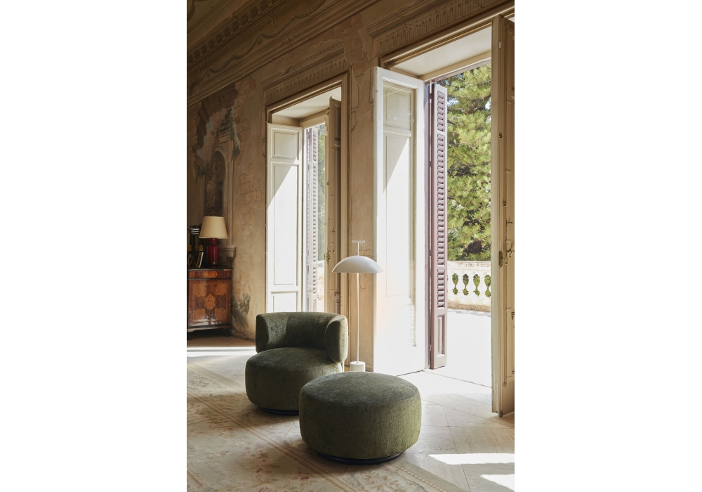 K-Waiting conçu par Rodolfo Dordoni pour Kartell est un pouf réalisé avec une structure en acier peint et assise et dossier en polyuréthane recouvert de tissu. Disponible en différentes finitions.