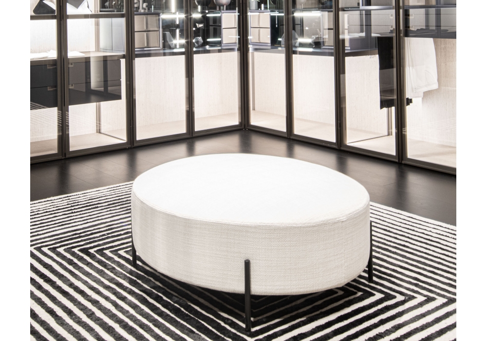 Virgin conçu par Mauro Lipparini pour MisuraEmme est un pouf composé d'une structure interne en bois recouverte de caoutchouc confort et d'une base en métal peint en noir. Revêtement en tissu ou cuir.